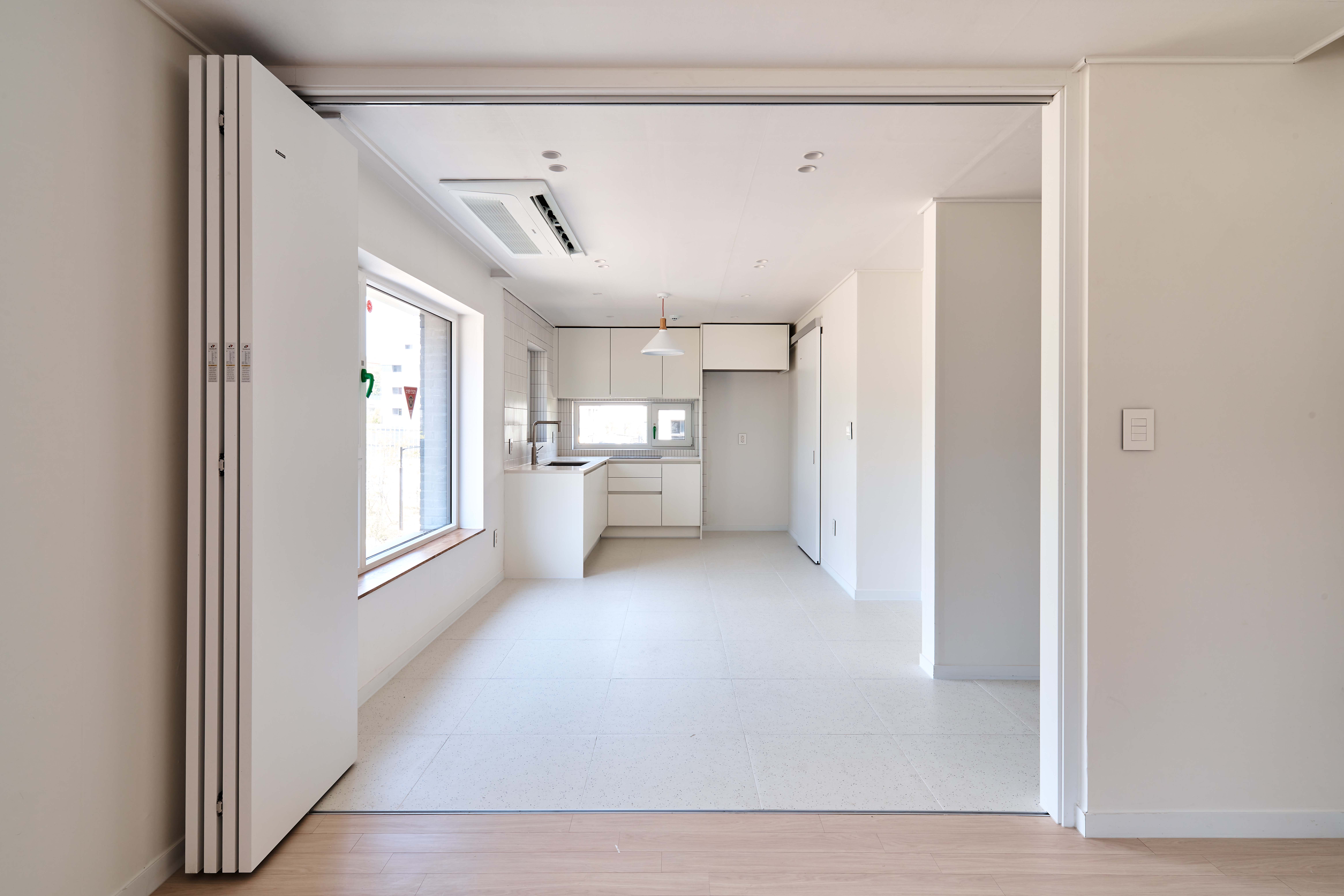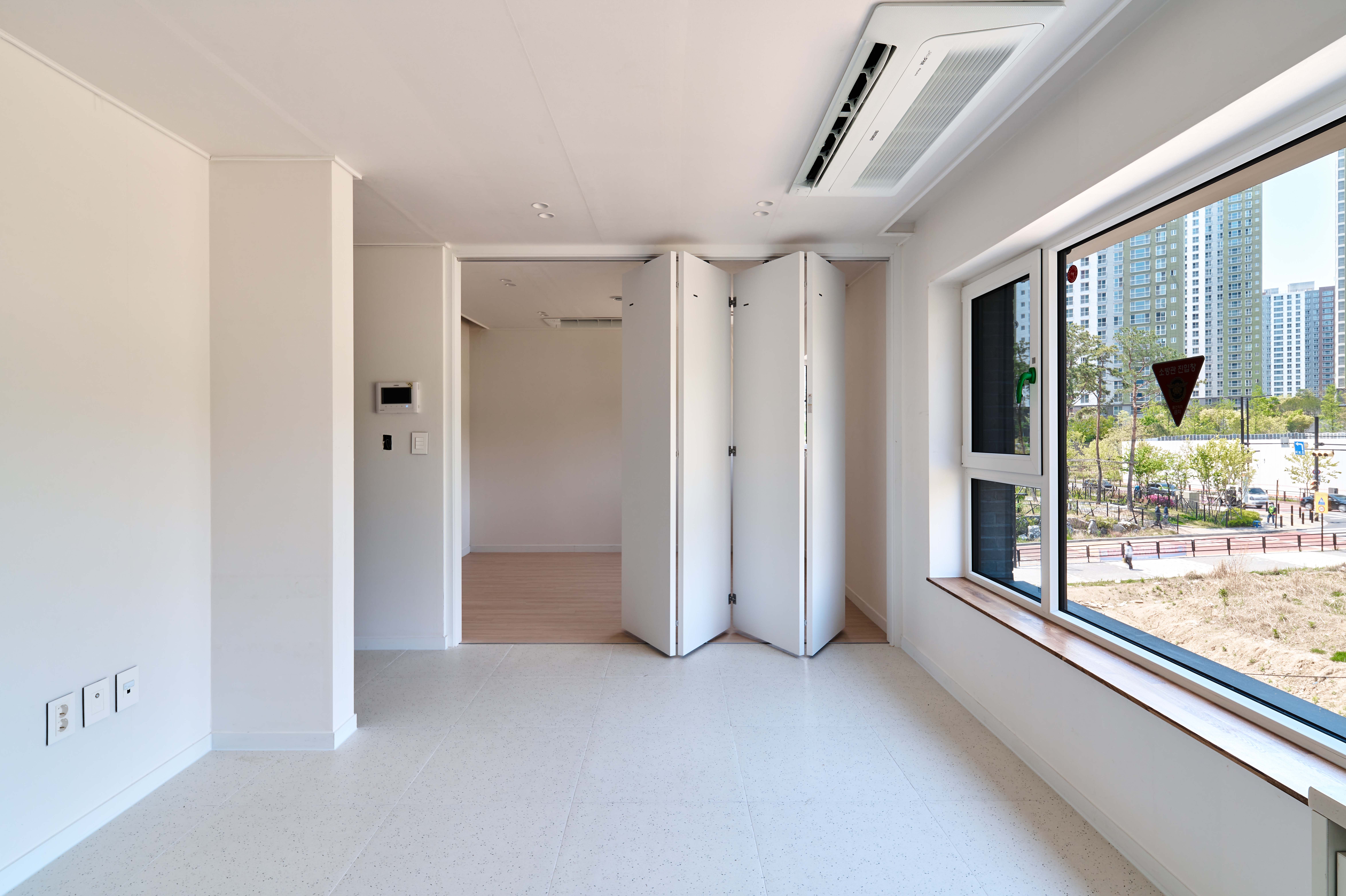 그래서 거실과 방 사이의 가변형 벽체로 입주자들의 다양한 라이프 스타일 그리고 앞으로 변하게 될 요구사항을 담아 낼 수 있도록 했다.